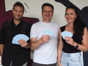 Als kleine Überraschung und Anerkennung für das großartig gelungene Schulfest am 14 Juni d. J., sowie als gleichzeitige Erinnerung an das diesjährige Ortsjubiläum, überbrachte Geschäftsführer Stefan Knöll im Namen des Vereins „1250 Jahre Rübenach“ für jedes Schulkind ein Exemplar der neu aufgelegten Jubiläumsspielkarten mit dem Jubiläumslogo und der Rüwwenacher Möck. Ein weiteres Merchandising Produkt, welches neben den bereits zu erhaltenden Weingläsern, Jubiläumssocken und der Ortschronik, offiziell ab dem 23. August der Verein zum großen Dorffest „1250 Jahre Rübenach“, anbietet.