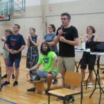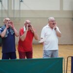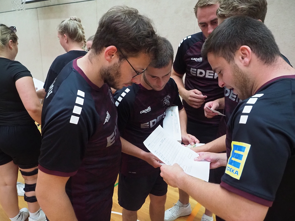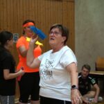 Ein weiteres Highlight und mehr noch eine Riesen Gaudi war das „Marktschreier-Spiel“. Hier standen sich die Mannschaften, bestehend jeweils aus „Einkäufern“ auf der einen Seite und „Marktschreiern“ (über eine Distanz von gut 10 Metern!) auf der anderen Seite gegenüber. Aus einem ohrenbetäubendem Geschrei und wildem Gestikulieren mit Händen und Füßen aller „Marktschreier“ gleichzeitig, mussten die „Einkäufer“ entsprechend zugerufene Obst und Gemüsesorten in eine Tasche einsammeln. Dabei gab es durchaus Unterschiede, ob es deutsche oder holländische Tomaten sein sollten. Es war ein Spektakel, das von Lachkrämpfen der Einen bis hin zum hilflos dreinschauen Anderer bestimmt war.