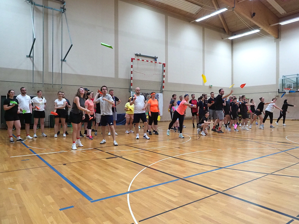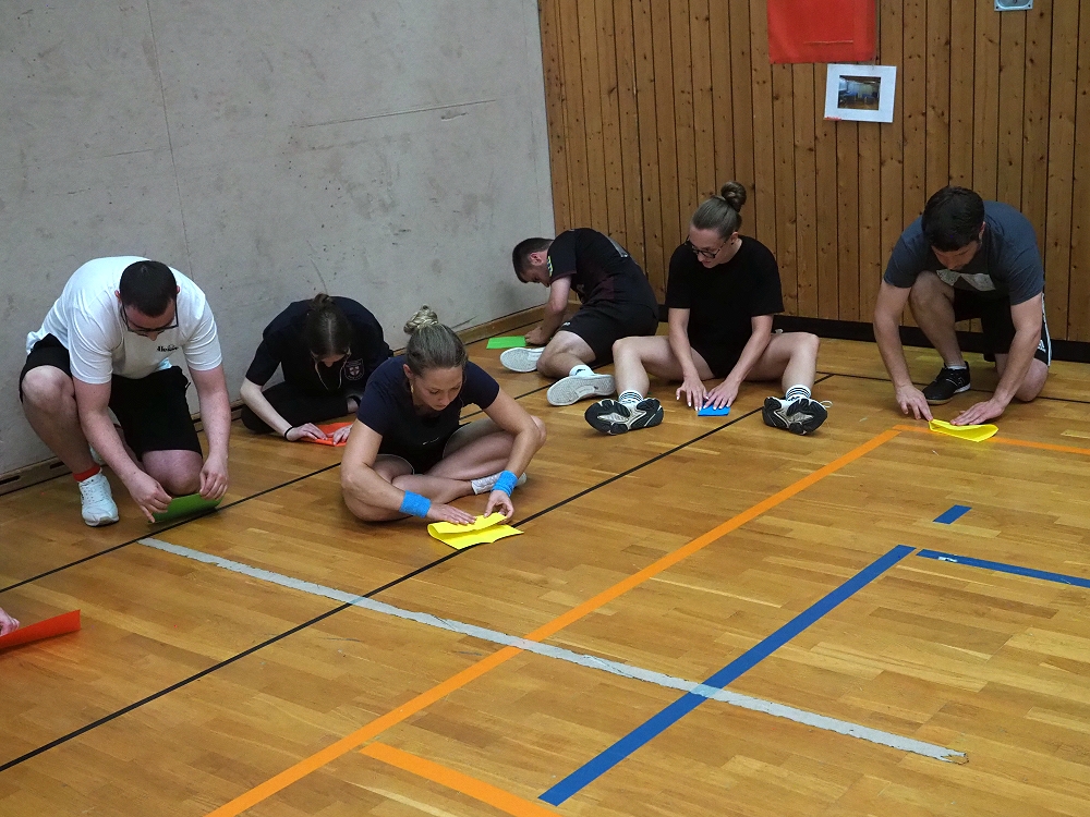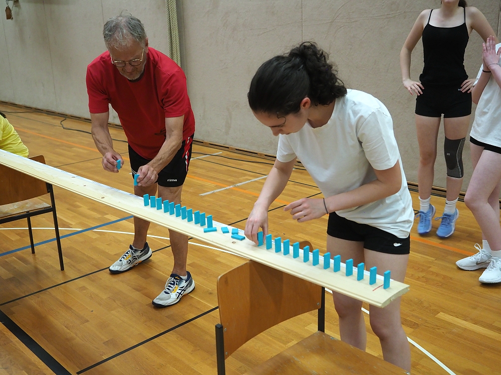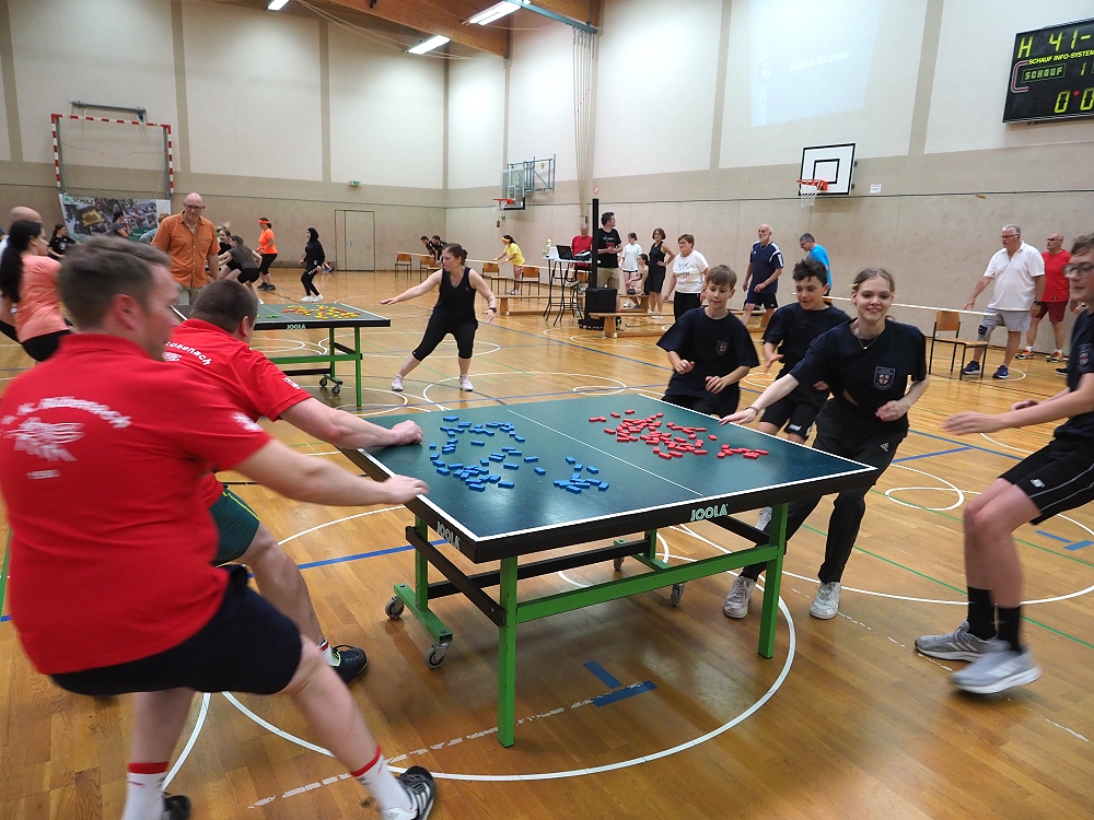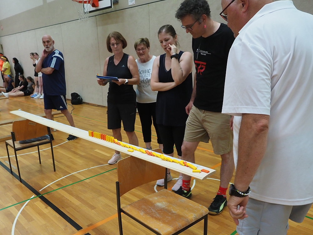 Vom Staffellauf mit Einsammeln von Gegenständen, Pantomime, Mini-Autorennen, Bilderrätsel, über Papierflieger Weitwerfen bis hin zum Türmchen errichten mit Dominosteinen, etc., reichte die vielfällige Spielepalette. Insgesamt 12 Spiele hatten sich die TVR Organisatoren zu diesem Wettkampf ausgedacht. Da war für jeden etwas dabei.