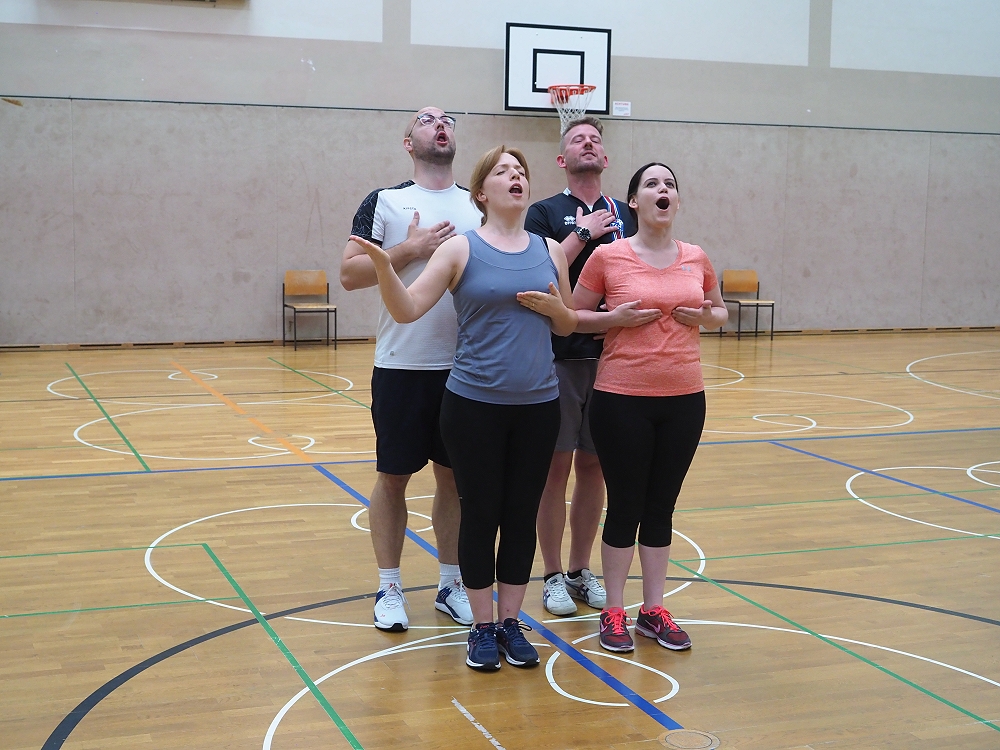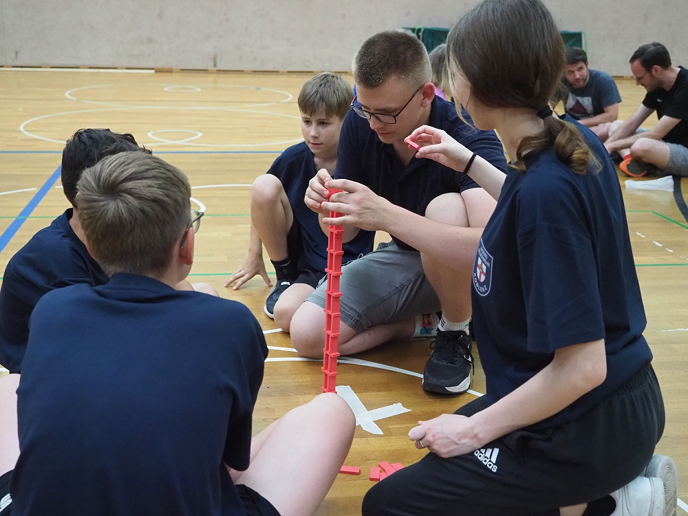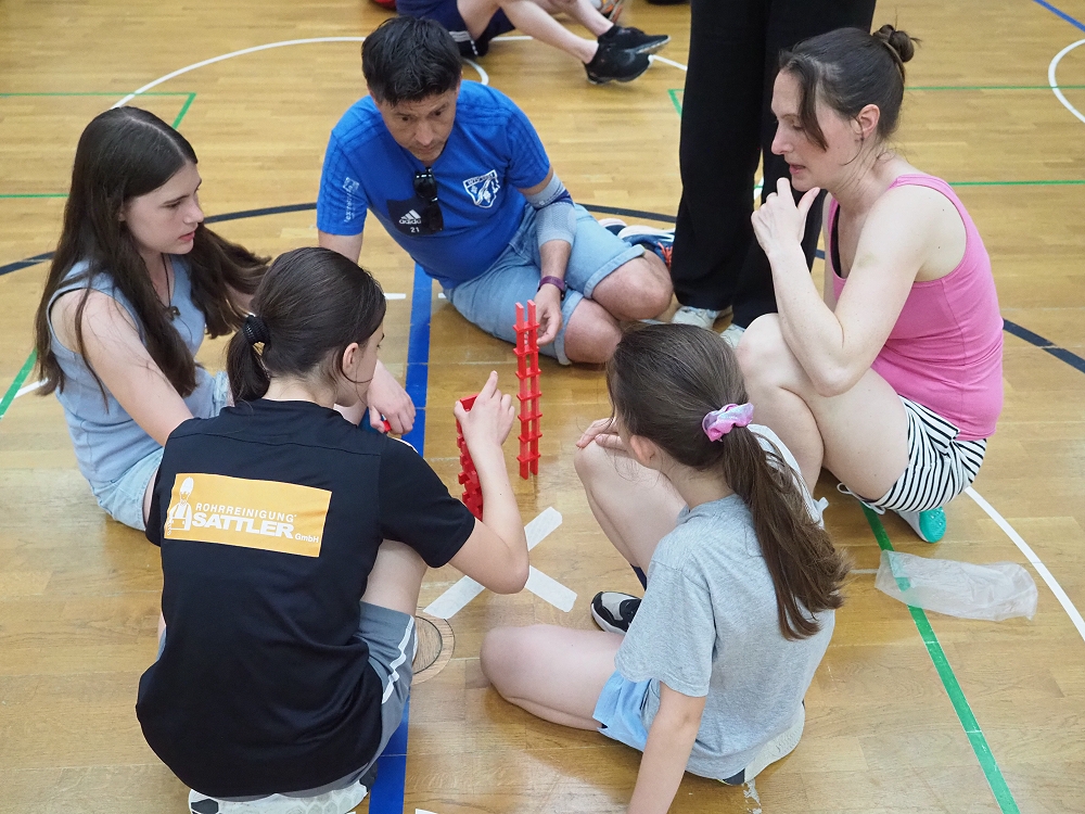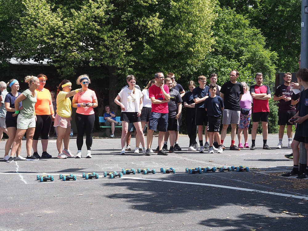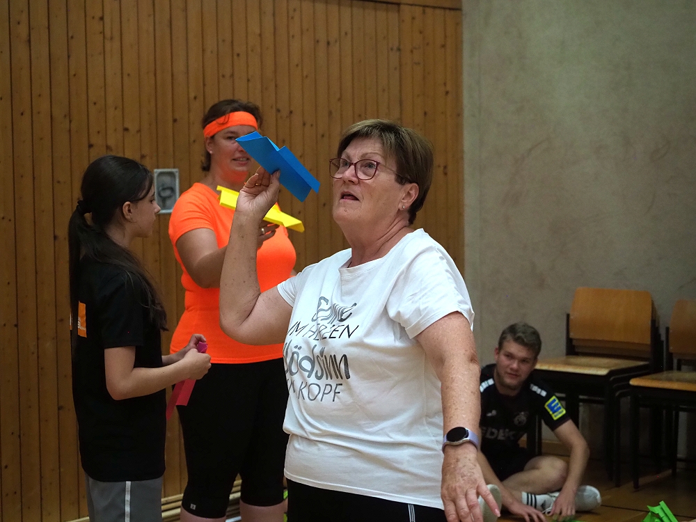 Vom Staffellauf mit Einsammeln von Gegenständen, Pantomime, Mini-Autorennen, Bilderrätsel, über Papierflieger Weitwerfen bis hin zum Türmchen errichten mit Dominosteinen, etc., reichte die vielfällige Spielepalette. Insgesamt 12 Spiele hatten sich die TVR Organisatoren zu diesem Wettkampf ausgedacht. Da war für jeden etwas dabei.
