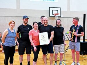Nach rund fünf Stunden Spiel & Spaß gab es dann auch ein Siegerteam. „Die gestiefelten Muskelkater“ sammelten die meisten Punkte und nahmen vor den „Skibby Idraetsklub“ und der CDU-Rübenach den Siegerpokal in Empfang.