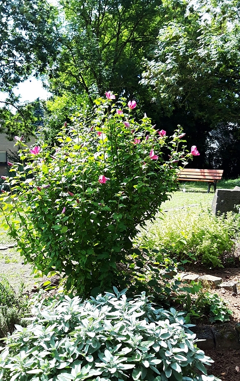 Aufgrund der schlechten Witterungsverhältnisse in den letzten Wochen wurde die Pflege des Bibel- und Friedensgarten etwas vernachlässigt. Der Boden war betonhart von der lang anhaltenden Hitzeperiode und vom anschließenden mehrmaligen Starkregen. Inzwischen haben ihn neu gepflegt und er erstrahlt wieder im alten Glanz.