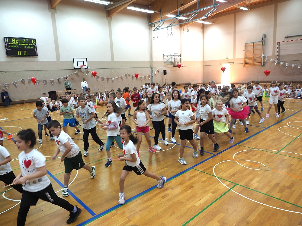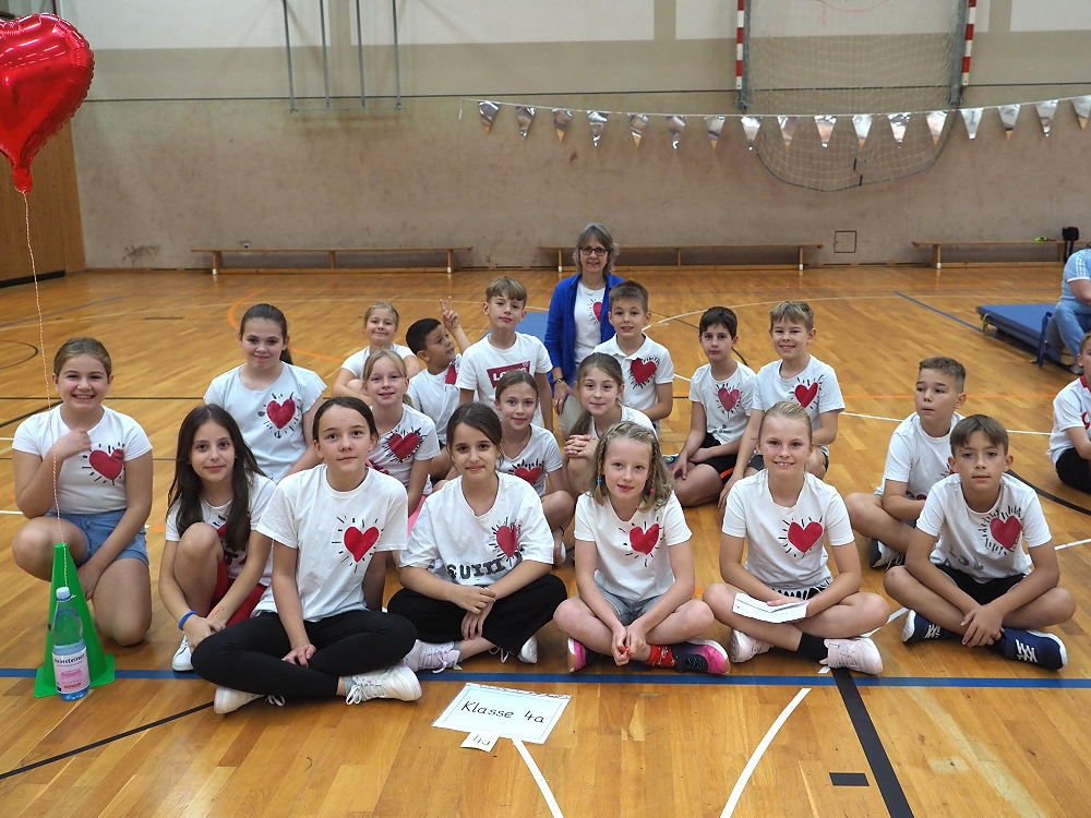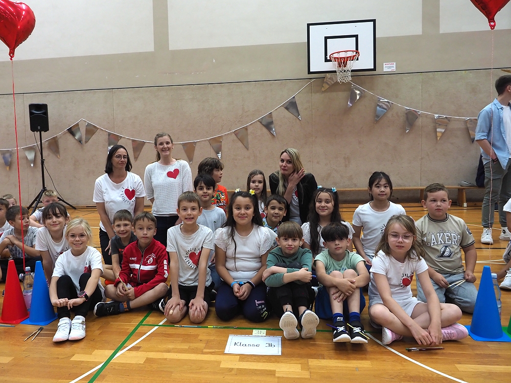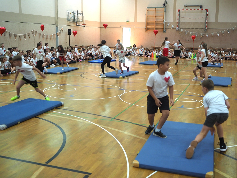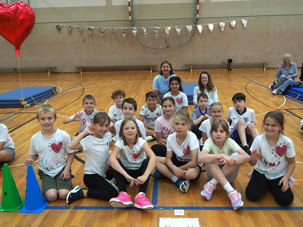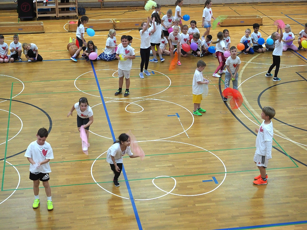 Die feierliche Verleihung fand in der Schulsporthalle statt, wo alle Schülerinnen und Schüler gemeinsam mit dem Schulteam, zahlreichen Eltern und den geladenen Ehrengästen die Auszeichnung begingen. Nachdem die Kinder mit ihrer Schulhymne „Grundschule mit Herz“ die Feierstunde eröffneten, begeisterten sie mit einem sportlichen Begleitprogramm die Gäste: von Cheerleading über Jonglage-Vorführungen bis zu Ringkämpfen und choreografierten Tänzen zeigten die Kinder ihre Leidenschaft für den Sport.