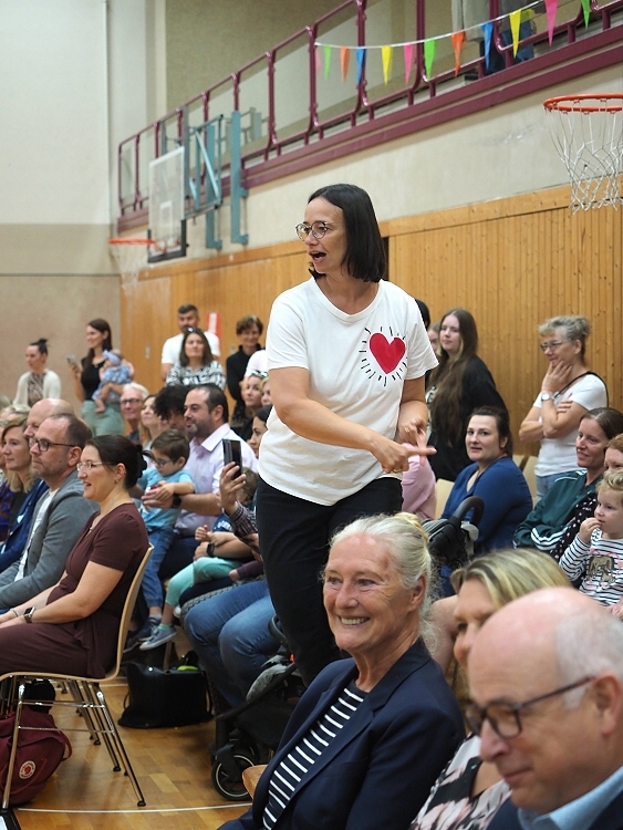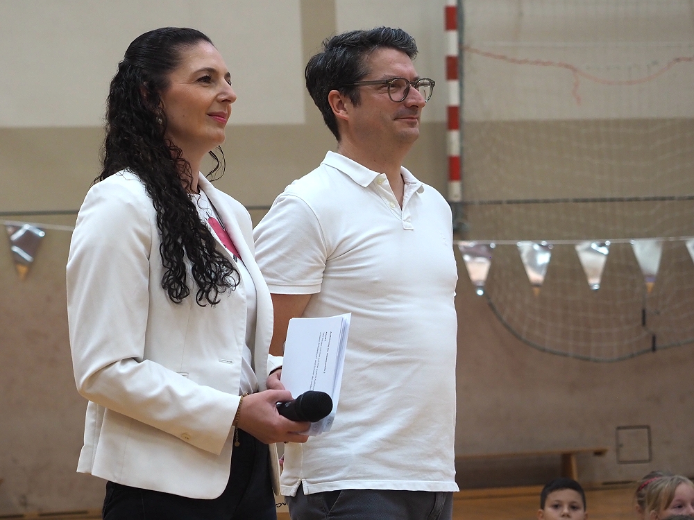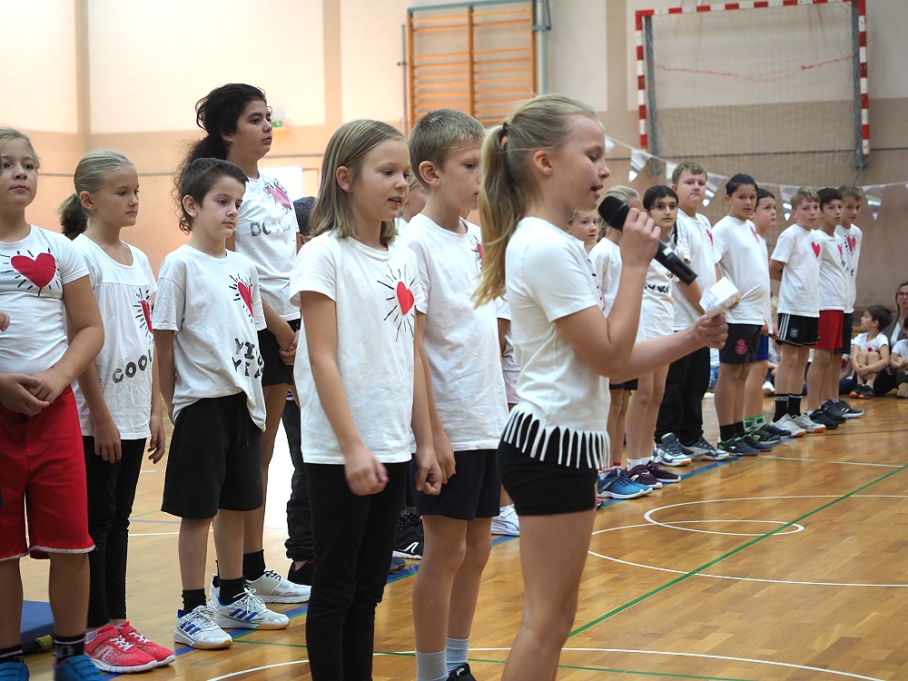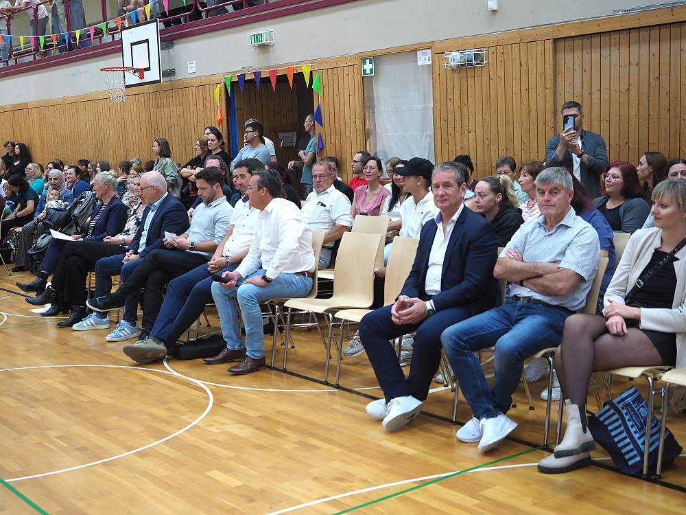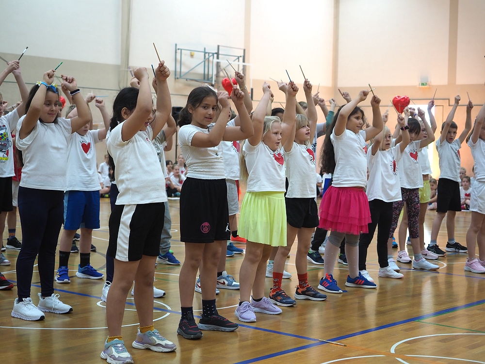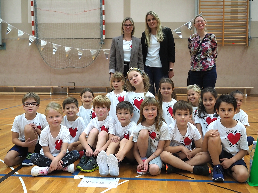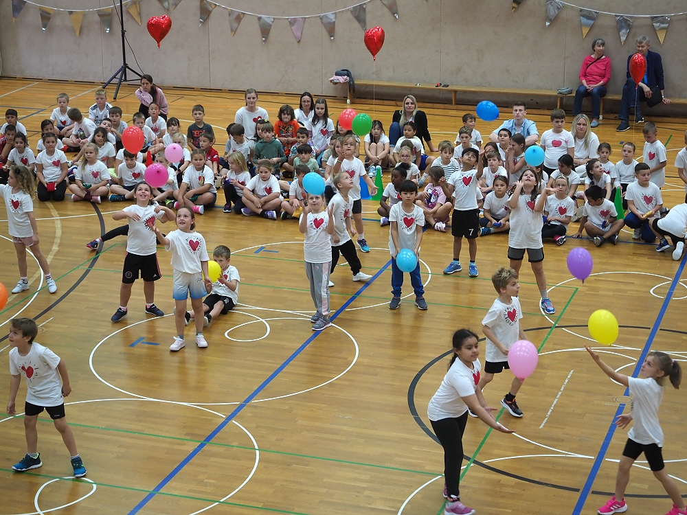 Die feierliche Verleihung fand in der Schulsporthalle statt, wo alle Schülerinnen und Schüler gemeinsam mit dem Schulteam, zahlreichen Eltern und den geladenen Ehrengästen die Auszeichnung begingen. Nachdem die Kinder mit ihrer Schulhymne „Grundschule mit Herz“ die Feierstunde eröffneten, begeisterten sie mit einem sportlichen Begleitprogramm die Gäste: von Cheerleading über Jonglage-Vorführungen bis zu Ringkämpfen und choreografierten Tänzen zeigten die Kinder ihre Leidenschaft für den Sport.