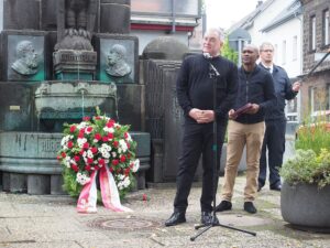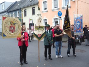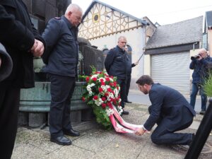 Im Anschluss an dem Kirchweihgottesdienst versammelten sich Bürger/innen und Vereinsabordnungen unter Mahnwache der Freiw. Feuerwehr Rübenach zur jährlichen Kranzniederlegung im Namen das Oberbürgermeisters der Stadt Koblenz.