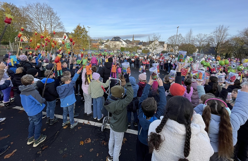 Am Dienstag, dem 11. November 2025, fand an der Grundschule Rübenach eine besondere St.-Martins-Aktion statt. Um 9.00 Uhr trafen sich alle Grundschulkinder gemeinsam mit den Kita-Kindern der Einrichtungen Zauberland, St. Mauritius und St. Maternus auf dem Schulhof. Gemeinsam sangen sie die beliebten St.-Martinslieder und ließen dabei ihre selbstgebastelten Laternen leuchten. Die bunten Lichter und die fröhlichen Stimmen der Kinder sorgten für eine warme und sehr stimmungsvolle Atmosphäre.