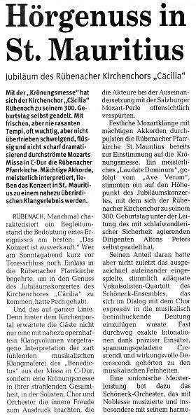 Der Rübenacher Kirchenchor "Cäcilia" präsentierte in der ausverkauften Pfarrkirche Mozart "Krönungsmesse" Foto: Herrmann