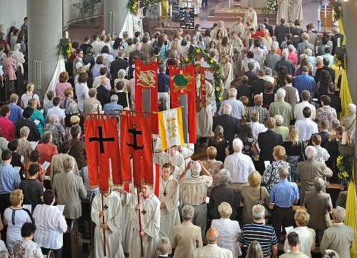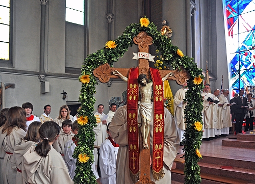 Orchester und Bläsergruppe umrahmt wurde, zog die Gemeinde durch den