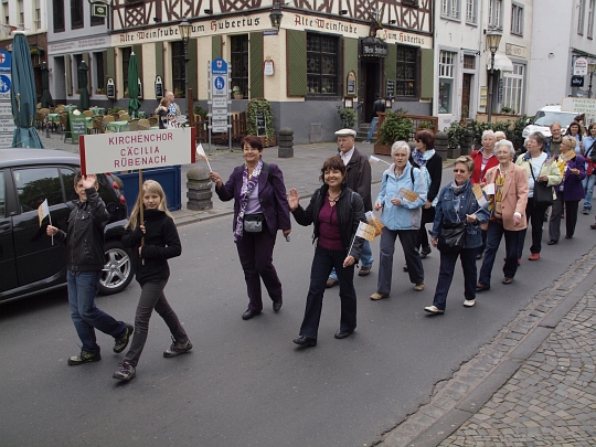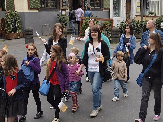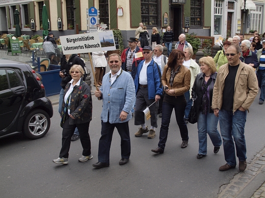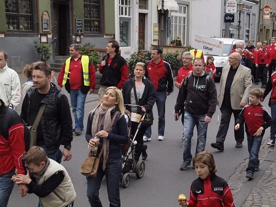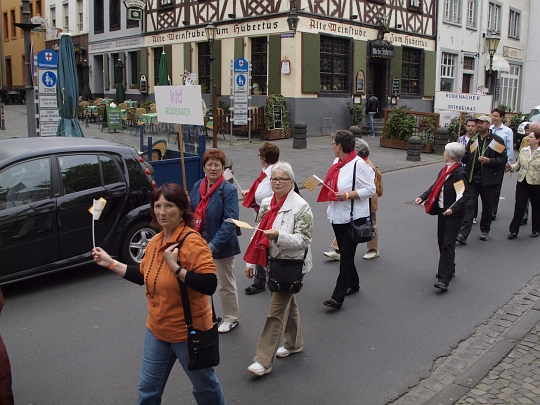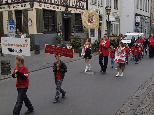 Koblenz, 16.04.2011. Mit rund 600 Teilnehmern beteiligte sich Rübenach an der BUGA Veranstaltung "Sternmarsch" der Stadtteile. Vom Stadtteil Lützel ging es gemeinsam mit anderen Koblenzer Stadtteilen zur Begrüßung ans Deutschen Eck.